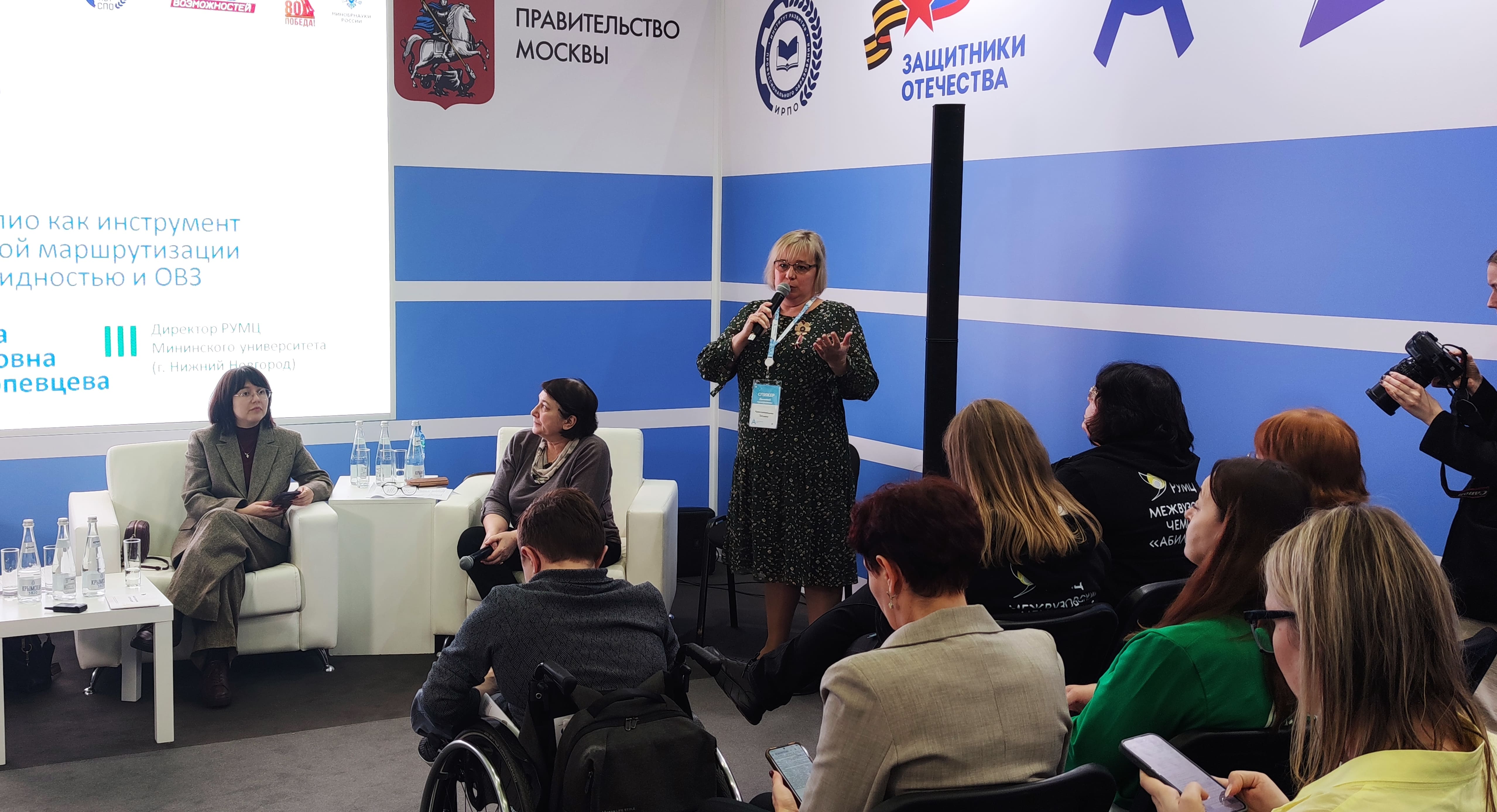 С докладом выступила также Елизавета Александровна Рузанкина, которая поделилась опытом Нижегородской области в вопросах построения образовательного маршрута для лиц с ОВЗ и инвалидностью.